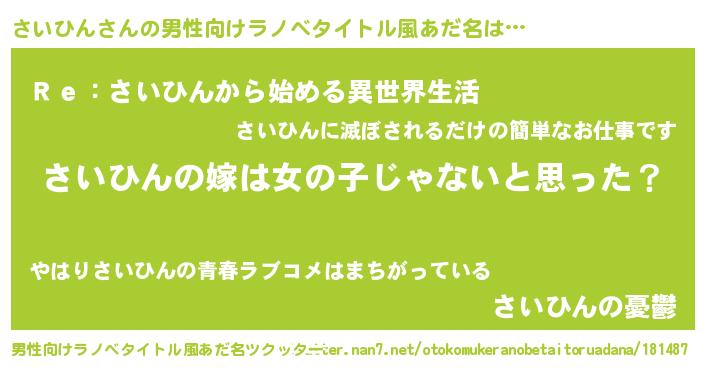 | 女子向けラノベタイトル風あだ名 | 『さいひん様がみてる』 |
