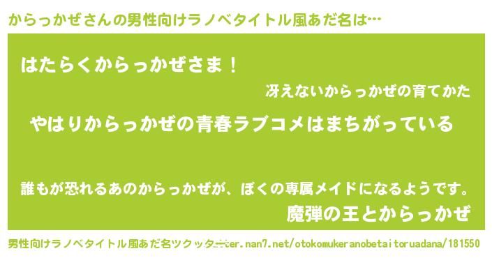 | 女子向けラノベタイトル風あだ名 | 『からっかぜの雑貨屋さん』 |