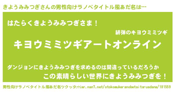 | 女子向けラノベタイトル風あだ名 | 『きようみみつぎ姫と円卓の騎士』 |