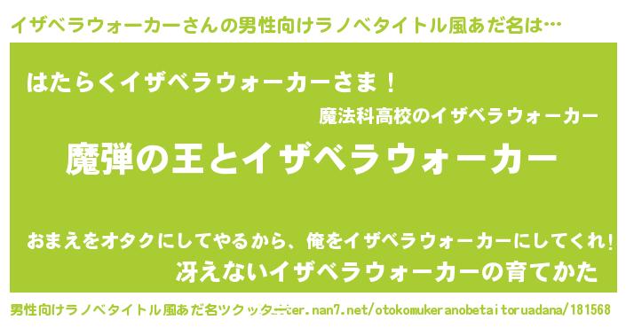 | ヘコむあだ名 | 『イザベラウォーカー(震え声)』『豆乳』 |