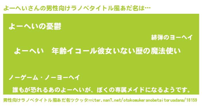 胡散臭い通販商品みたいなあだ名 | 『億万長者になれる水晶球…その名も「よーへい」』 |