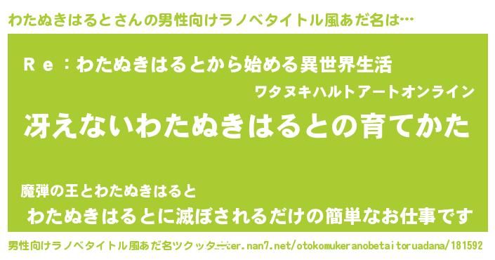 | 意味不明あだ名 | 『自称わたぬきはると』 |