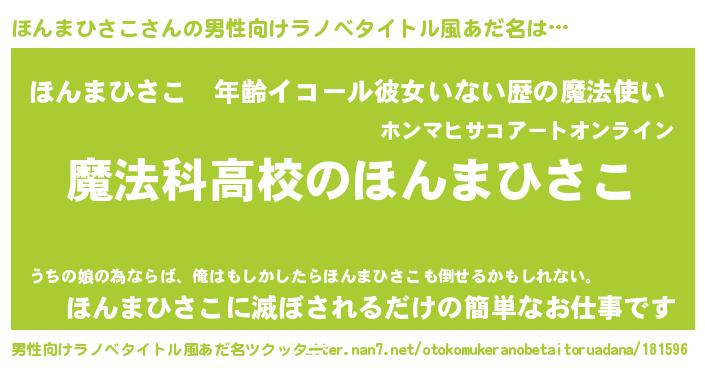 | 意味不明あだ名 | 『自称ほんまひさこ』 |
