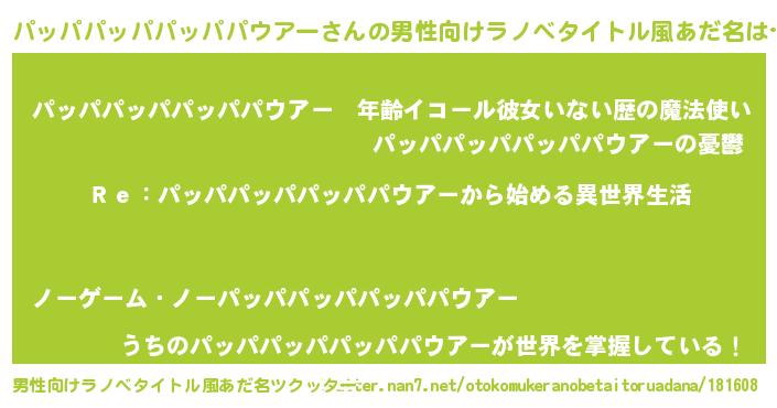 | ヒーロー風カッコイイあだ名 | 『サイバー戦士パッパパッパパッパパウアー』 |