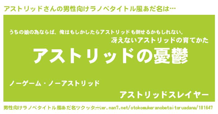 | 女子向けラノベタイトル風あだ名 | 『(仮)アストリッドのやんごとなき事情』 |
