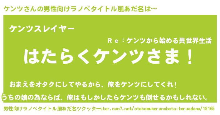 | 女子向けラノベタイトル風あだ名 | 『首の姫と首なしケンツ』『闇のケンツ』 |