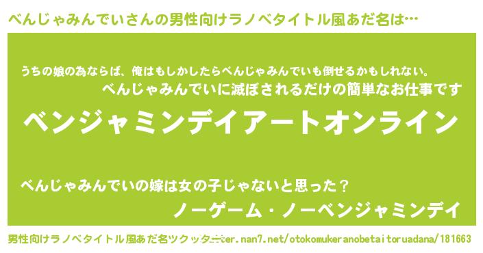 | 女子向けラノベタイトル風あだ名 | 『誰かこのべんじゃみんでいを説明してください! ~契約から始まるウェディング~』 |