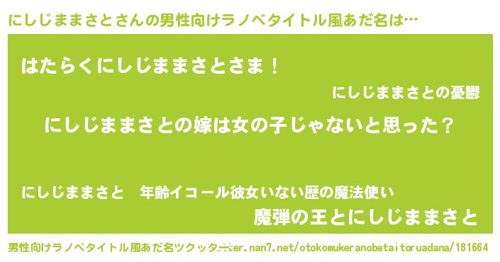 | 女子向けラノベタイトル風あだ名 | 『にしじままさと様がみてる』 |