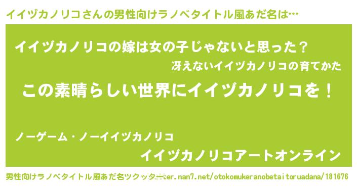 | 胡散臭い通販商品みたいなあだ名 | 『あなたにだけ特別に提供する限定10本のレアな日本酒…その名も「イイヅカノリコ」』 |