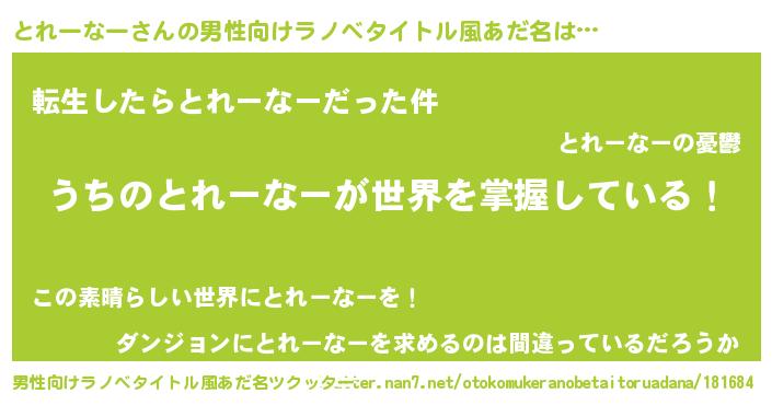 | 胡散臭い通販商品みたいなあだ名 | 『全米が絶賛したペンダント…その名も「とれーなー」』 |