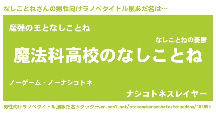 | 女子向けラノベタイトル風あだ名 | 『なしことねなんてお断りですっ。』 |