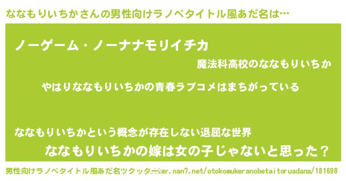 | 女子向けラノベタイトル風あだ名 | 『ななもりいちか伯爵の花嫁』 |
