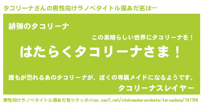 | ヒーロー風カッコイイあだ名 | 『仮面タコダー』『ネオタコリーナ』 |