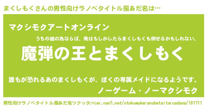 | 女子向けラノベタイトル風あだ名 | 『まくしもくが死なない童話 林檎のまくしもくの診療簿』 |
