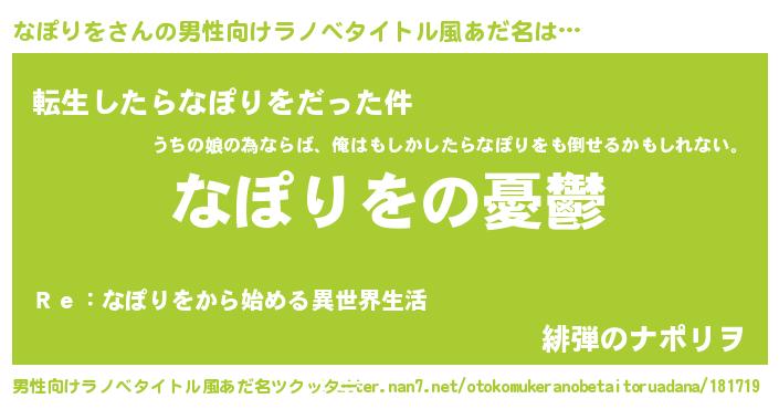 | 女子向けラノベタイトル風あだ名 | 『なぽりを姫と円卓の騎士』 |