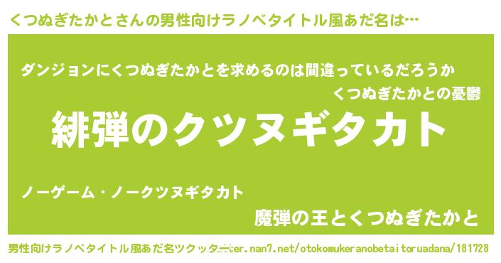 | 胡散臭い通販商品みたいなあだ名 | 『信頼と実績のネックレス…その名も「くつぬぎたかと」』 |