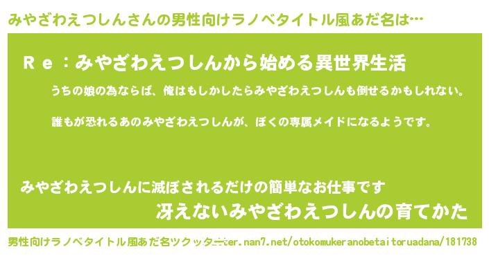 みやざわえつしんさんの男性向けラノベタイトル風あだ名をツクッター!
