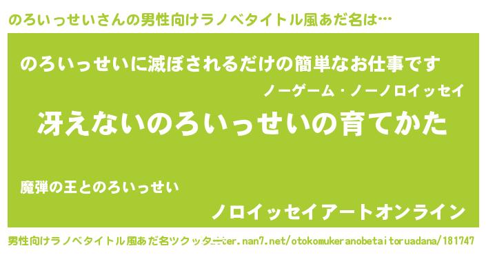 | ヒーロー風カッコイイあだ名 | 『スーパーノロイッセイ』『仮面ノロダー』 |