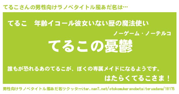 | 女子向けラノベタイトル風あだ名 | 『(仮)てるこのやんごとなき事情』 |