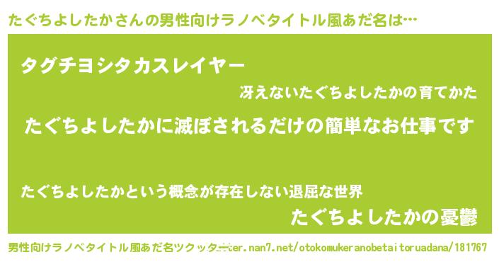 | 胡散臭い通販商品みたいなあだ名 | 『モテモテ間違いなし水晶球…その名も「たぐちよしたか」』 |