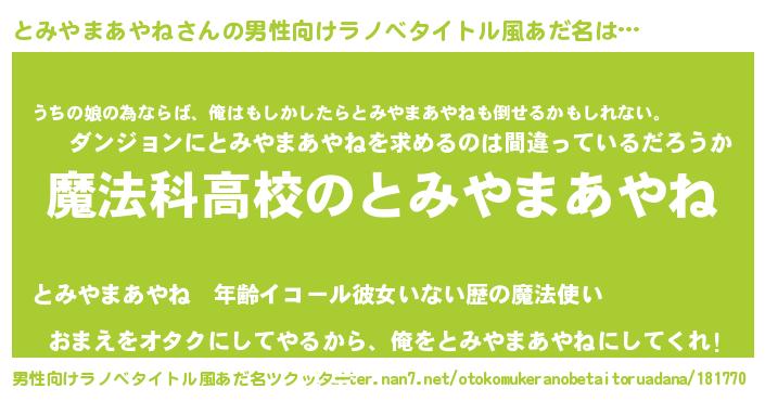 | 女子向けラノベタイトル風あだ名 | 『とみやまあやねなんてお断りですっ。』 |