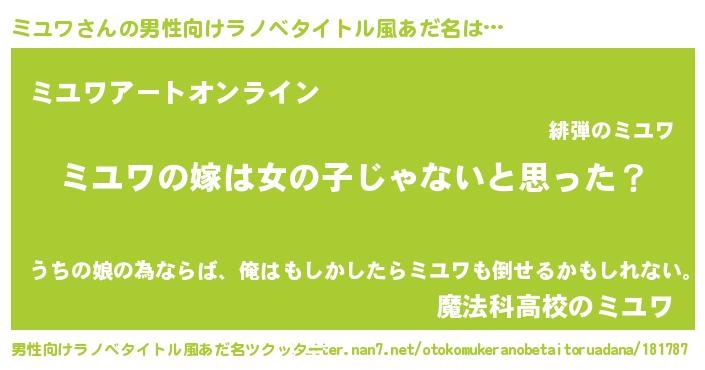 | ヒーロー風カッコイイあだ名 | 『炎刃騎士ミユ』『スーパーミユワ』 |