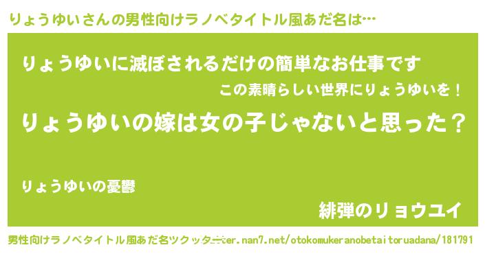 | 意味不明あだ名 | 『とにかく怪しいりょうゆい』 |