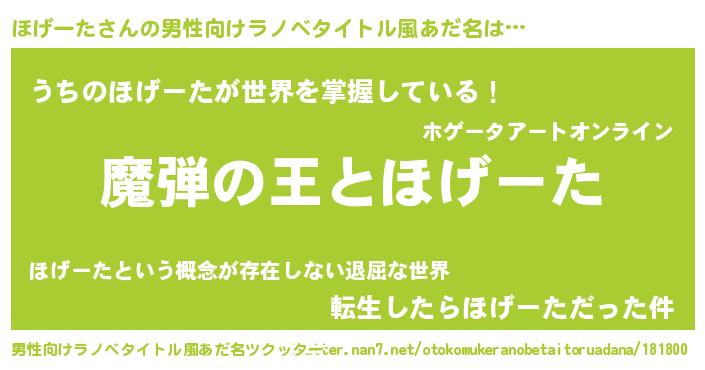 | 女子向けラノベタイトル風あだ名 | 『乙女ゲームの破滅フラグしかない悪役ほげーたに転生してしまった…』 |