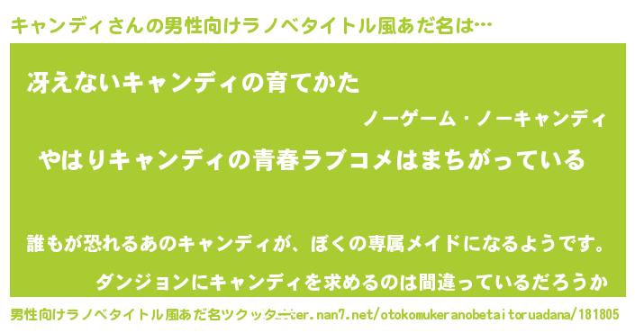 | 女子向けラノベタイトル風あだ名 | 『キャンディの雑貨屋さん』 |