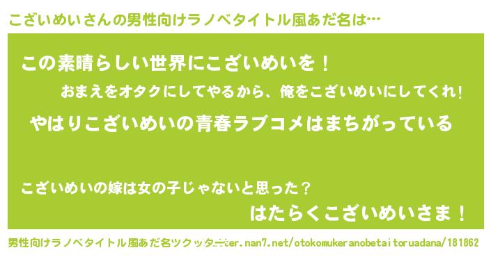 | 女子向けラノベタイトル風あだ名 | 『こざいめいの雑貨屋さん』 |