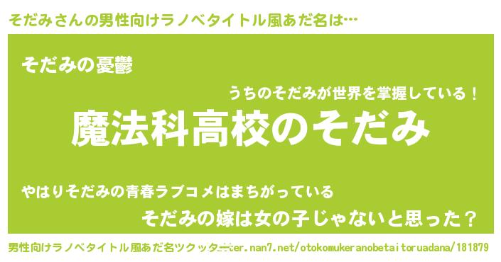 | 女子向けラノベタイトル風あだ名 | 『そだみなんてお断りですっ。』 |