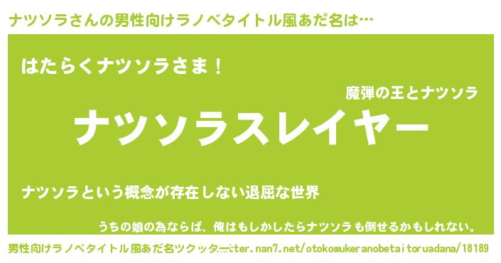 | 肩書あだ名 | 『ナツソラ上級大将』『ナツソラ総理大臣』 |