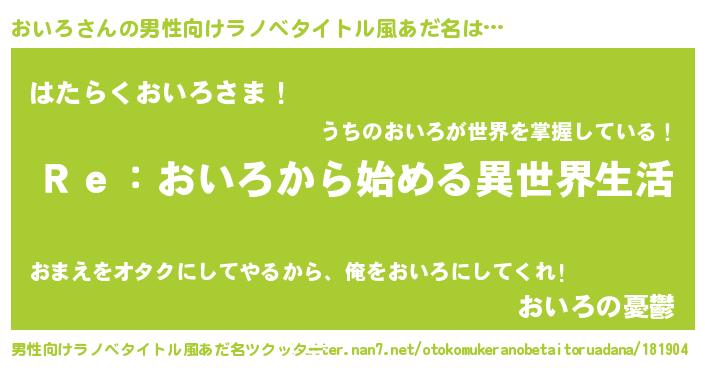 おいろさんの男性向けラノベタイトル風あだ名をツクッター!