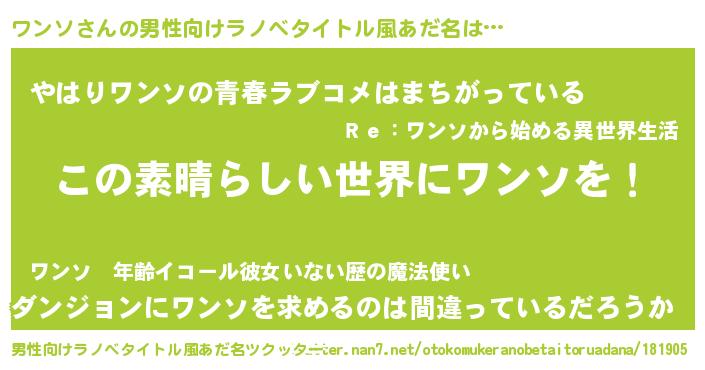 | 女子向けラノベタイトル風あだ名 | 『乙女ゲームの破滅フラグしかない悪役ワンソに転生してしまった…』 |