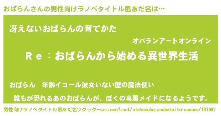 | 女子向けラノベタイトル風あだ名 | 『おばらんストレイドッグス』 |