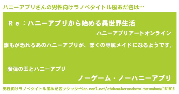| 胡散臭い通販商品みたいなあだ名 | 『前代未聞の健康食品…その名も「ハニーアプリ」』 |