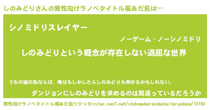 | ヒーロー風カッコイイあだ名 | 『ネオシノミドリ』『暗黒騎士シノ』 |