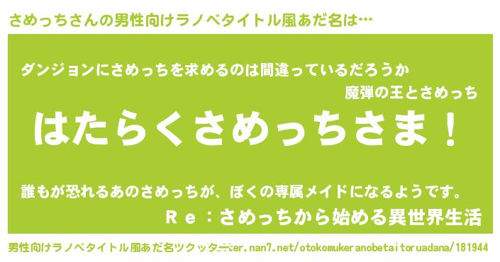 | 胡散臭い通販商品みたいなあだ名 | 『信頼と実績のネックレス…その名も「さめっち」』 |