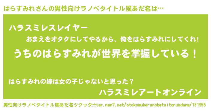 | 伝説のあだ名 | 『封印されし竜騎士はらすみれ』 |