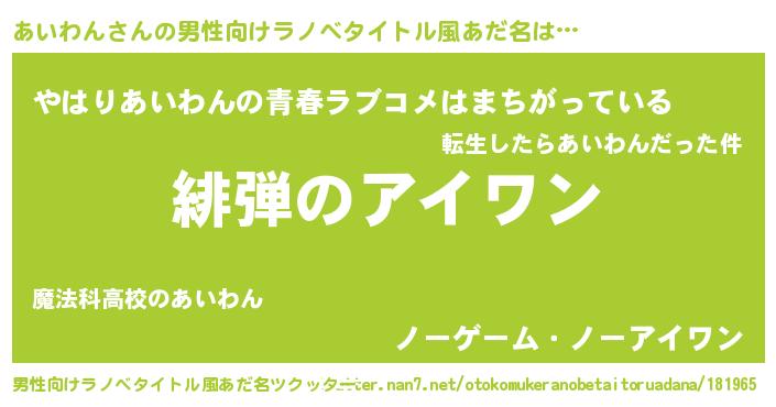 | 意味不明あだ名 | 『あいわんフォーエバー』『自称あいわん』 |