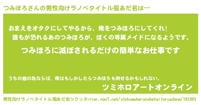 | ヒーロー風カッコイイあだ名 | 『慈愛の使者つみほろ』『ネオツミホロ』 |