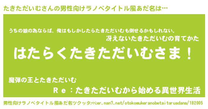 | ファンタジー風あだ名 | 『エターナルタキタダイムー』 |