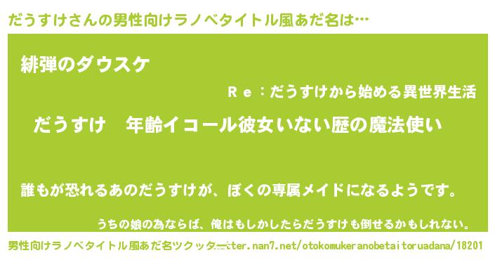 | 女子向けラノベタイトル風あだ名 | 『だうすけの玉の輿計画!』 |
