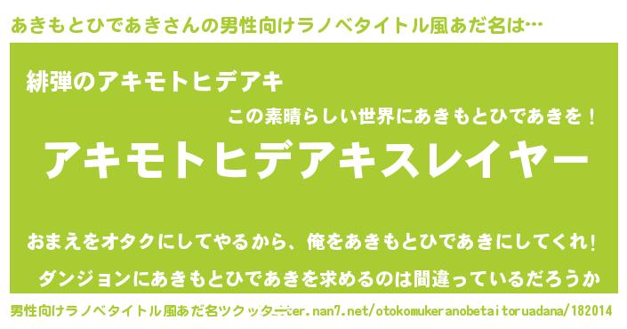 | 意味不明あだ名 | 『しいたけ科あきもとひであき属』 |