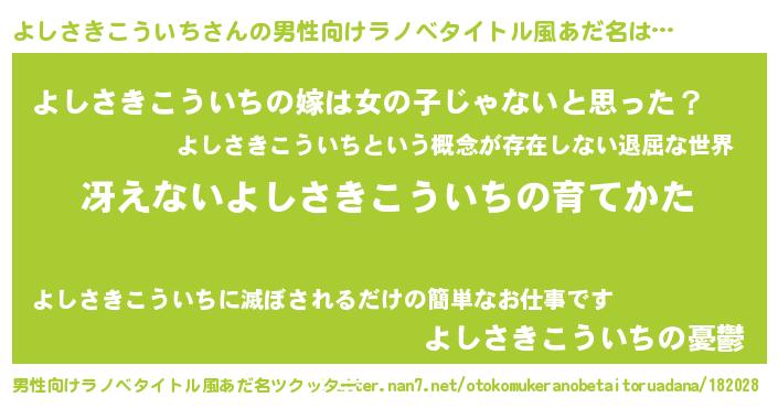 | 女子向けラノベタイトル風あだ名 | 『男装よしさきこういちの憂鬱な任務』 |