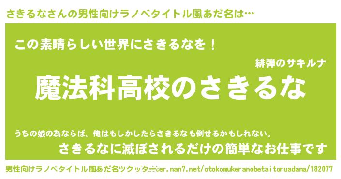 女子向けラノベタイトル風あだ名 | 『さきるななんてお断りですっ。』 |