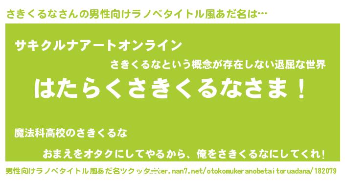 | ヒーロー風カッコイイあだ名 | 『スーパーサキクルナ』『ネオサキクルナ』 |