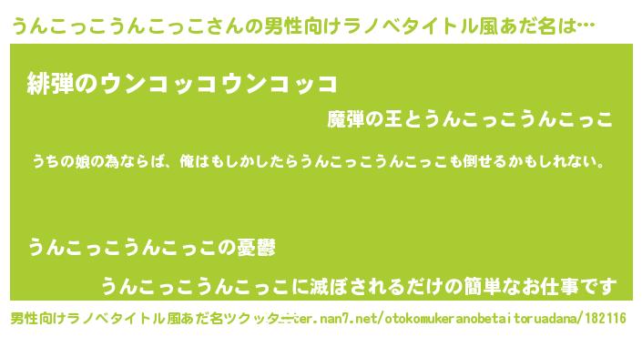 | 女子向けラノベタイトル風あだ名 | 『うんこっこうんこっこ伯爵の花嫁』 |