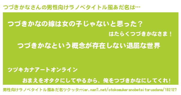 | 女子向けラノベタイトル風あだ名 | 『異世界で失敗しない100のつづきかな』 |