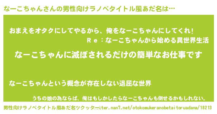 | ヒーロー風カッコイイあだ名 | 『慈愛の使者なーこちゃん』 |